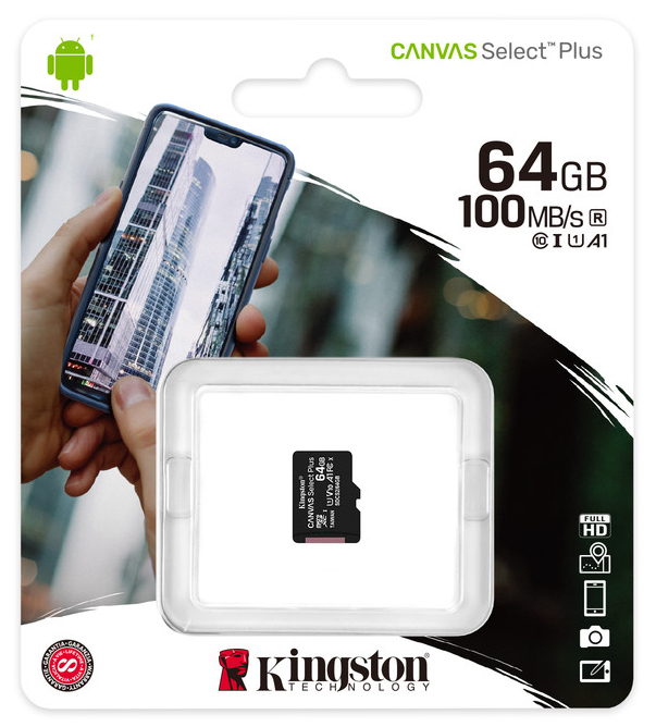 —Карта памяти micro SDXC 64GB Kingston Class 10 UHS-I Canvas Select Plus A1 100 Mb/s