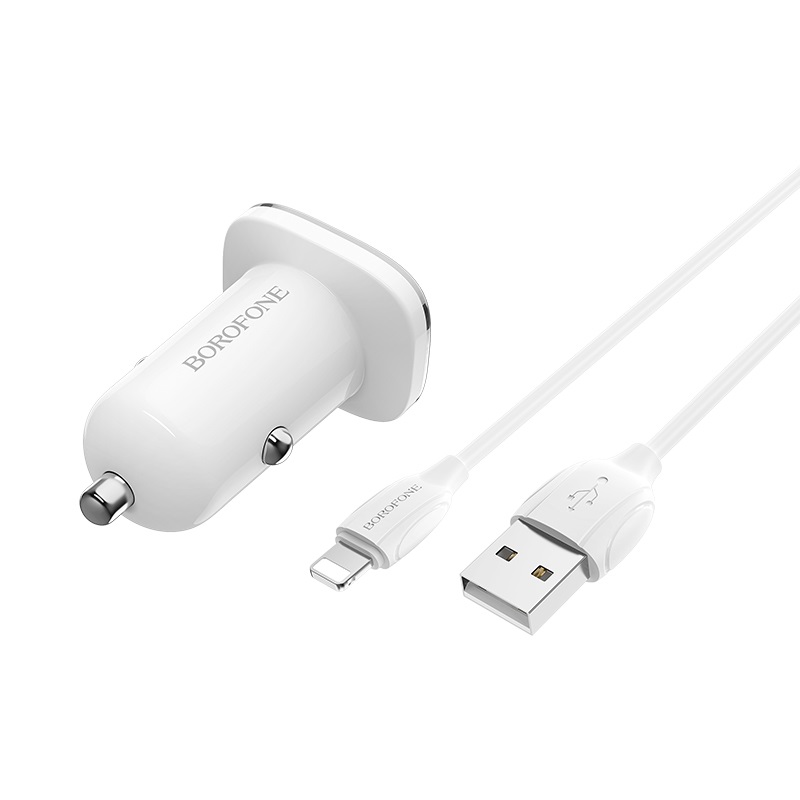 —Зарядное устройство авто. BOROFONE BZ12 2.4A 2*USB + кабель Lightning