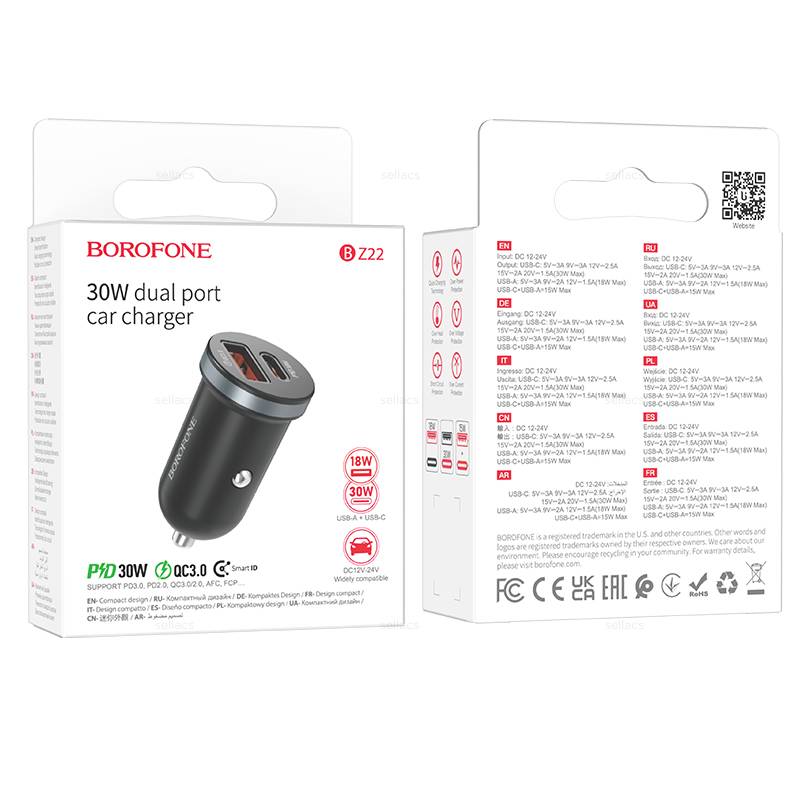 —Зарядное устройство авто. BOROFONE BZ22 PD30W + QC3.0
