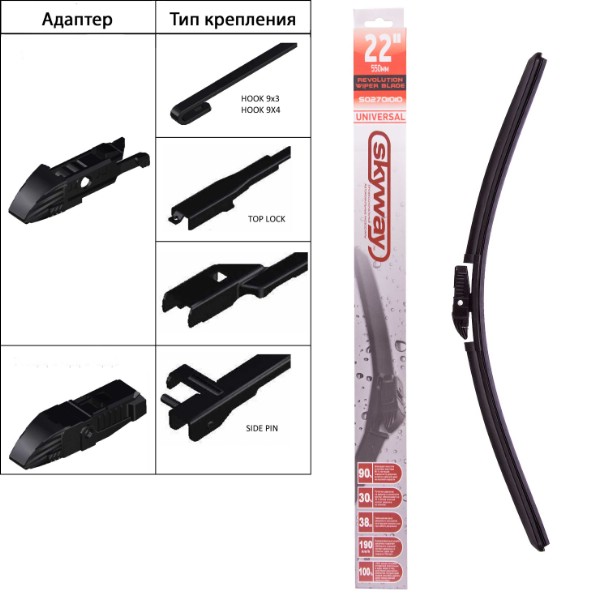 —Щетка стеклоочистителя бескаркасная 53см/21" SKYWAY 1шт. 5 адаптеров SB-530